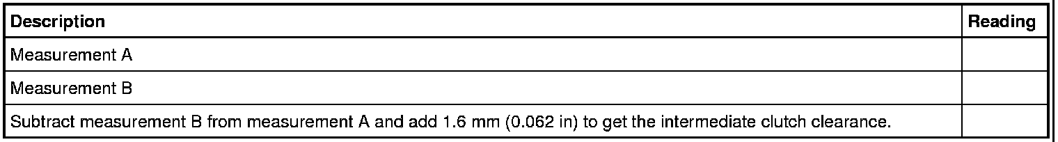 263. Subtract measurement B from measurement A and add 1.6 mm (0.062 in), to compensate for the thickness of the gasket, to get the intermediate clutch clearance. The clearance should be between 0.99 mm (0.038 in) and 2.56 mm (0.1 in). If the clearance is out of range, check the intermediate clutch pack for correct installation. If the intermediate clutch pack is correctly installed, install a new intermediate clutch pack.