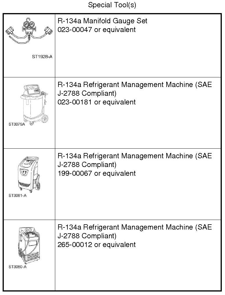 2. Connect an R-134a Manifold Gauge Set or R-134a Refrigerant Management Machine with high-pressure and low-pressure gauges to the refrigerant system.