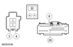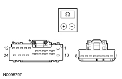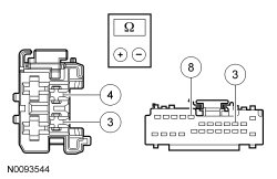 - Measure the resistance between memory SET switch C2094-7, circuit GD115 (BK/GY), harness side and ground.
