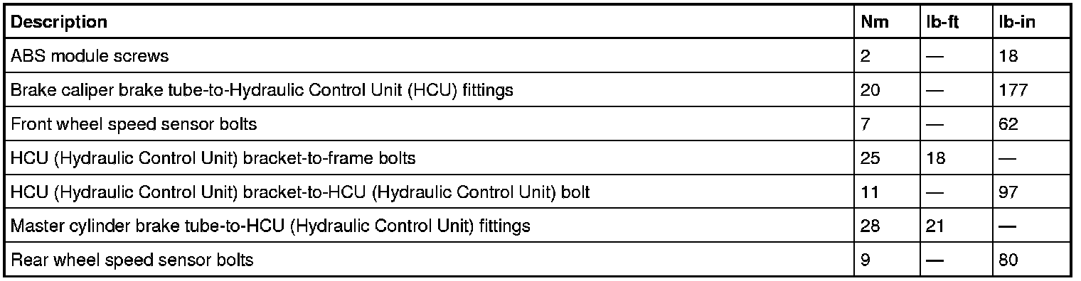 Torque Specifications