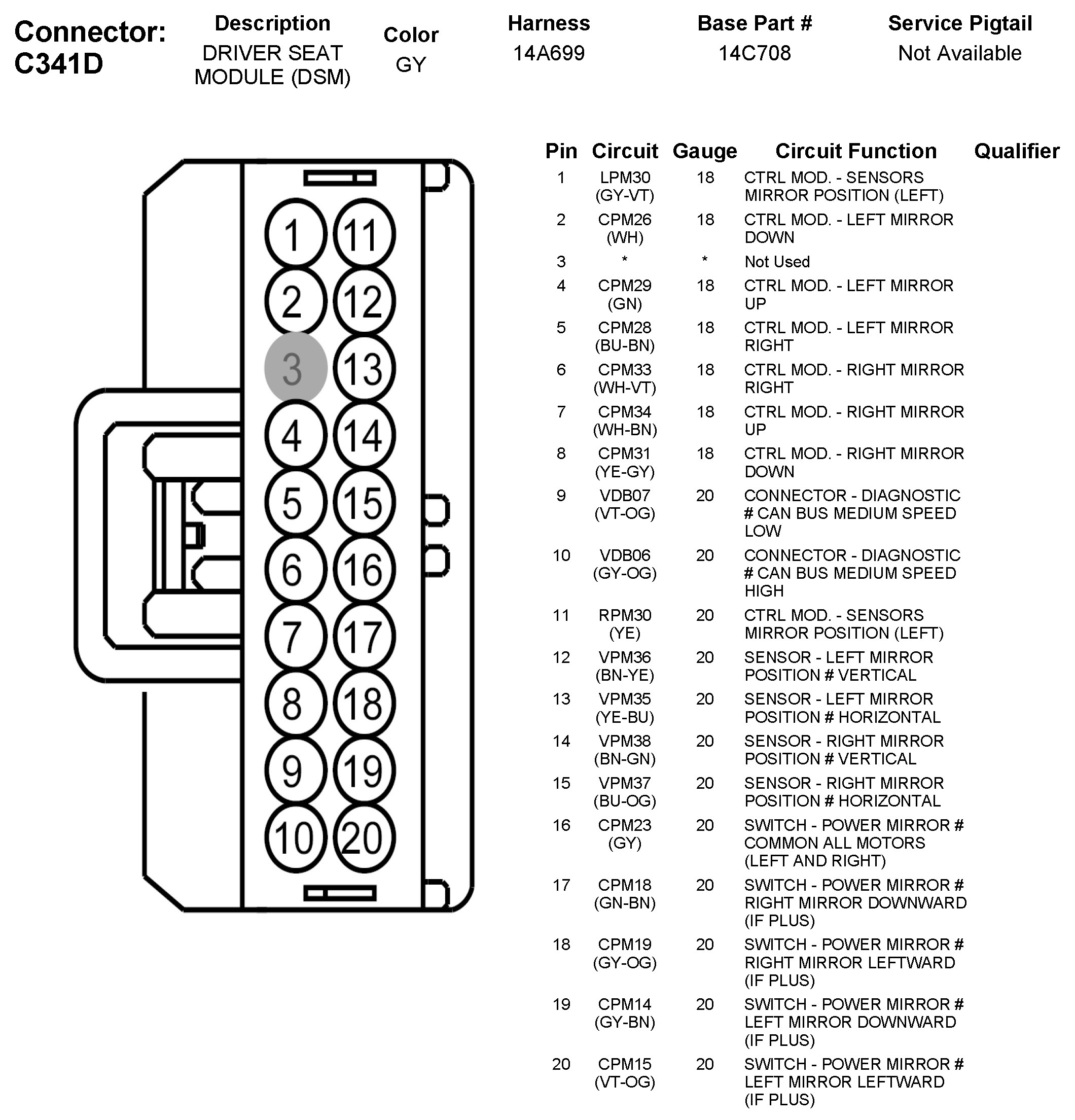 C341D Driver Seat Module (DSM)