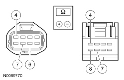 - Measure the resistance between LF power window motor C540-8, circuit GD143 (BK/VT), harness side and ground.