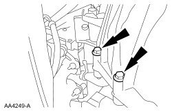 Position the fuel and Evaporative Emission (EVAP) tube support bracket and install the upper 2 transmission-to-engine bolts.