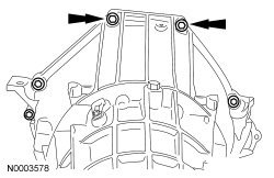 3. NOTICE: Only use hand tools when tightening the engine support insulator nuts or the engine support insulator may be damaged.