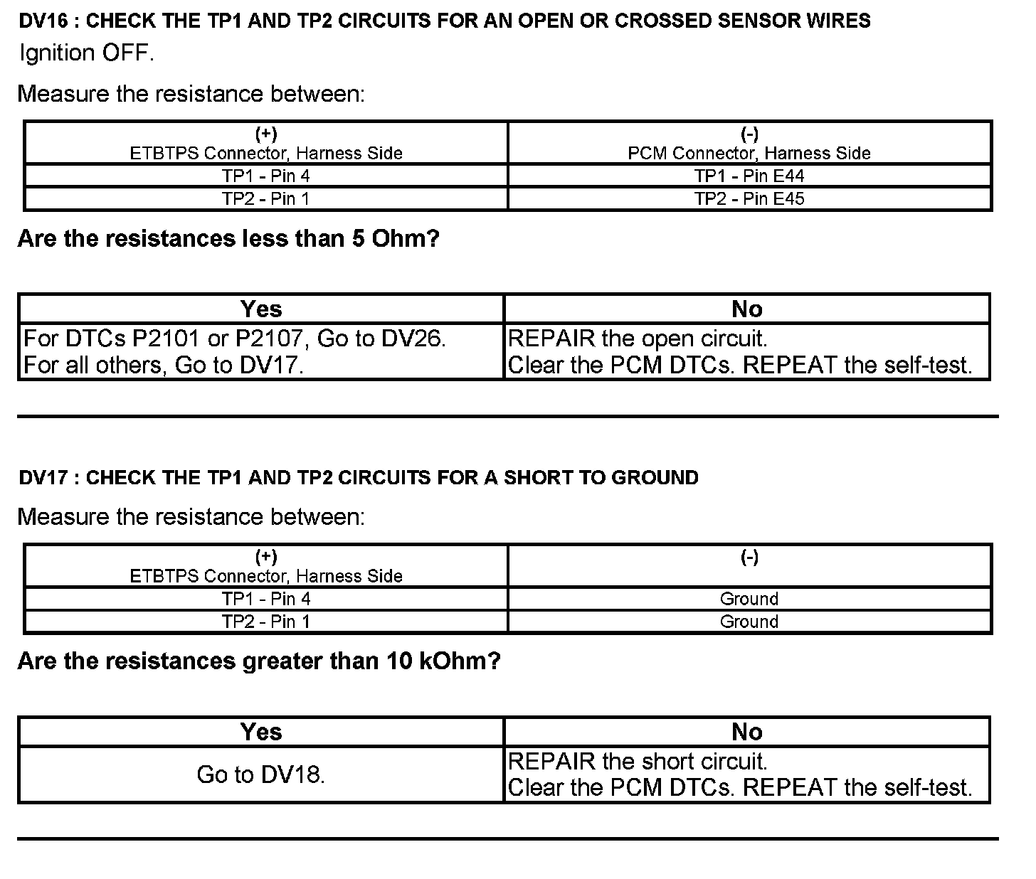 Test DV: Throttle Body Assembly Electronic Throttle Control (ETC)