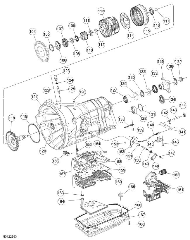 26. NOTE: Place the manual control lever in PARK when installing the rear planetary gearset to hold the rear ring gear stationary.