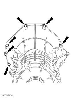 8. NOTE: Install the transmission case bolts in their correct locations noted during removal.