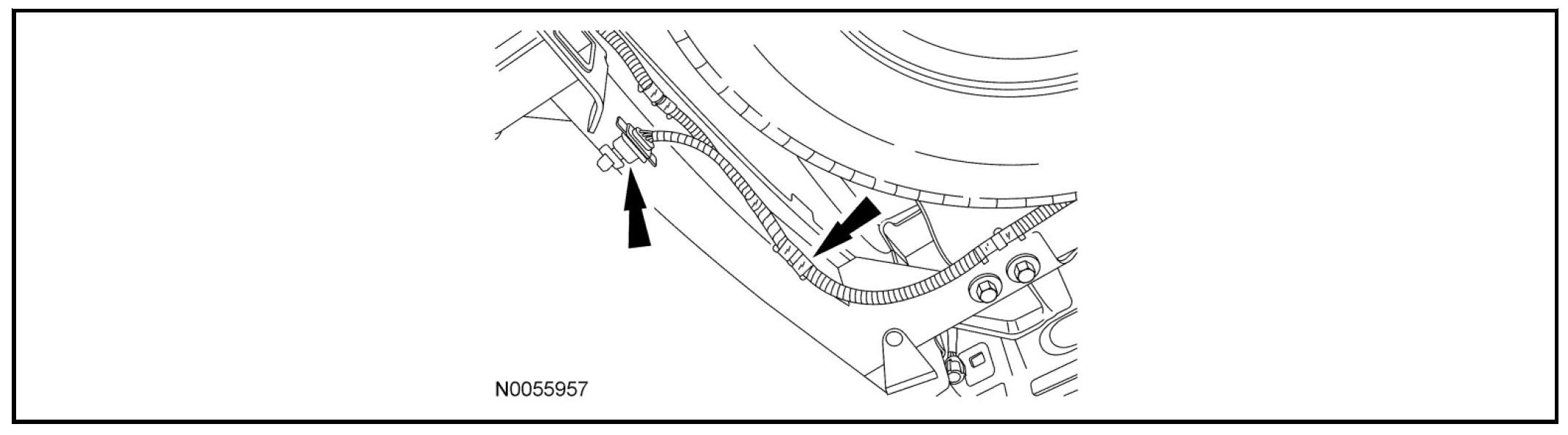 5. Remove the electrical connector from the trailer hitch and unclip the harness from the retainers on the frame.