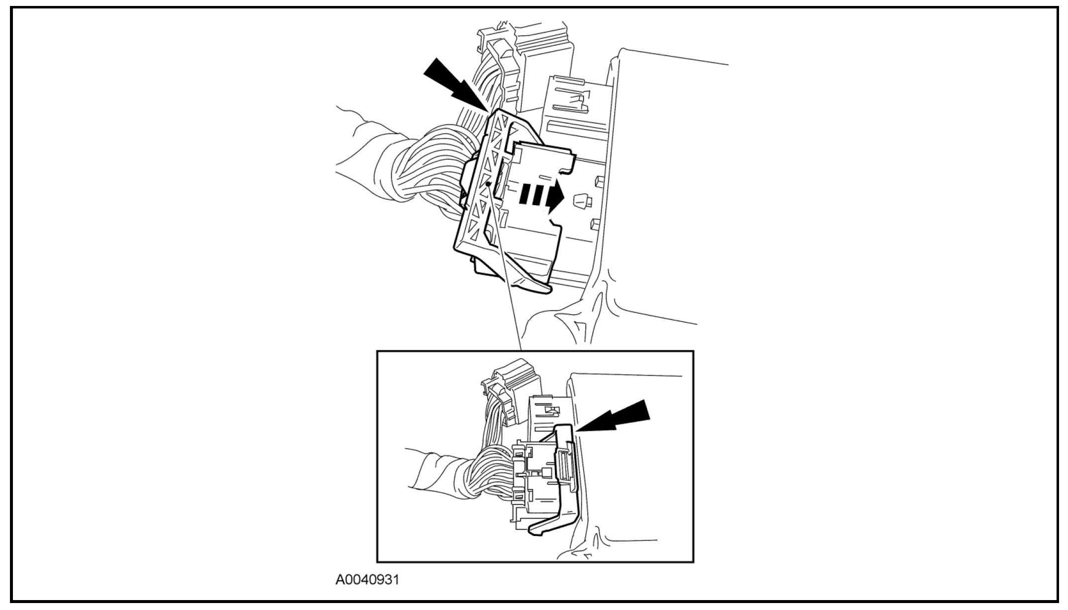 2. While releasing the retaining tab, pull out and disconnect the small RCM electrical connector.