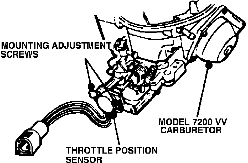 The throttle position sensor mounting holes are slotted to permit adjustment. If the sensor is replaced, it must be correctly positioned or incorrect throttle information will be sent to the ECA. The adjustment requires use of special electronic test equipment.