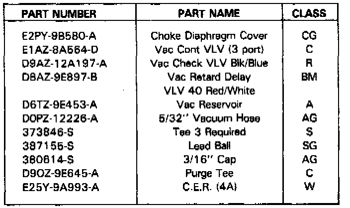 17. Locate the cannister purge solenoid and follow the rubber line down to the junction with the carburetor bowl vent line. Remove the tee and install yellow tee (Part No. D9OZ-9E645-A).