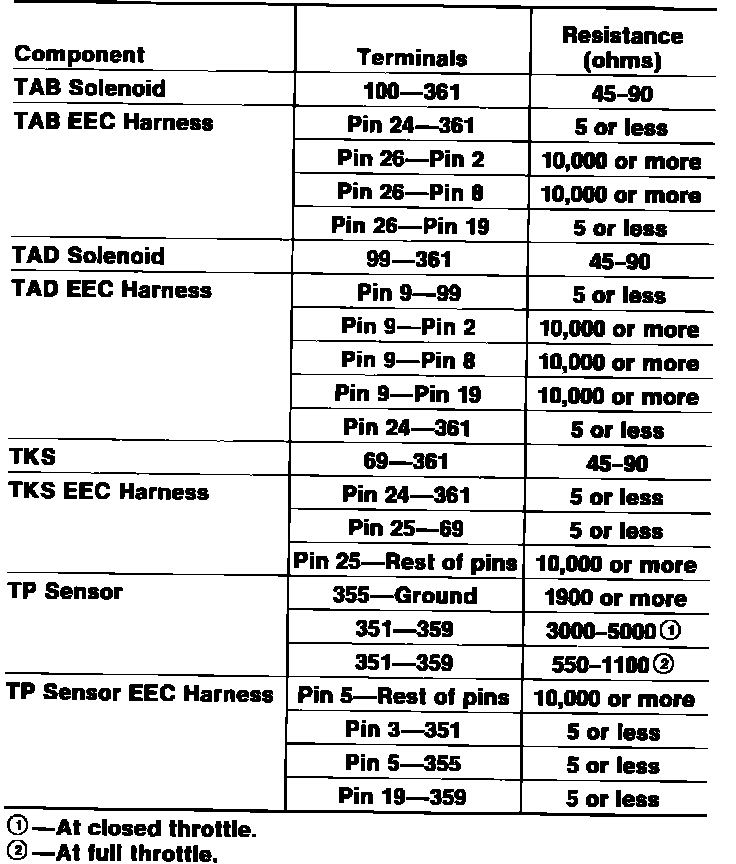 Fig. 25a EEC-III component, terminal & resistance specification chart: