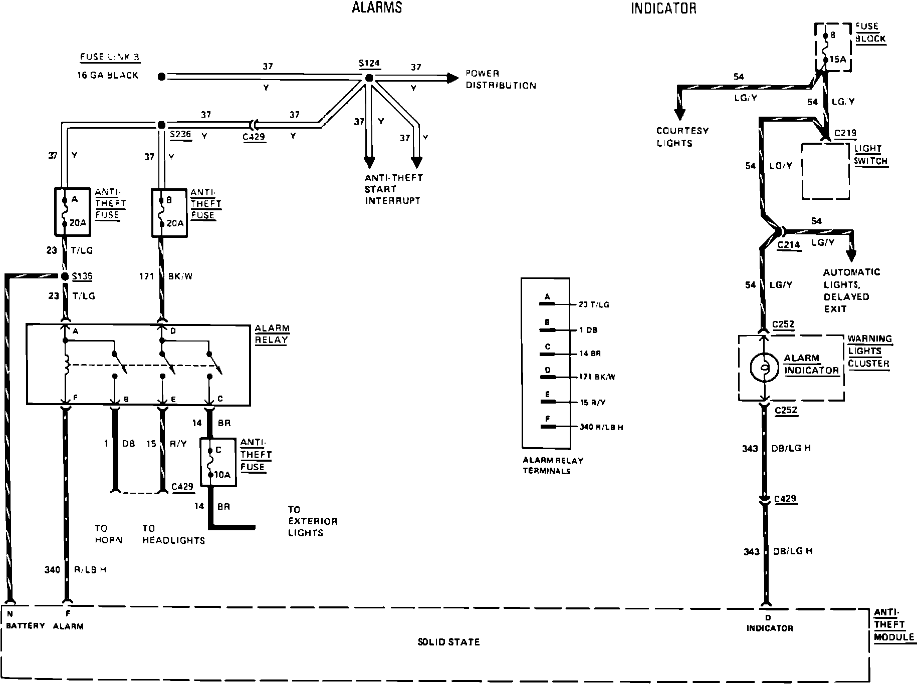 Fig. 17 Anti-Theft system wiring circuit (Alarms & indicator). 1983 Mark VI & Town Car: