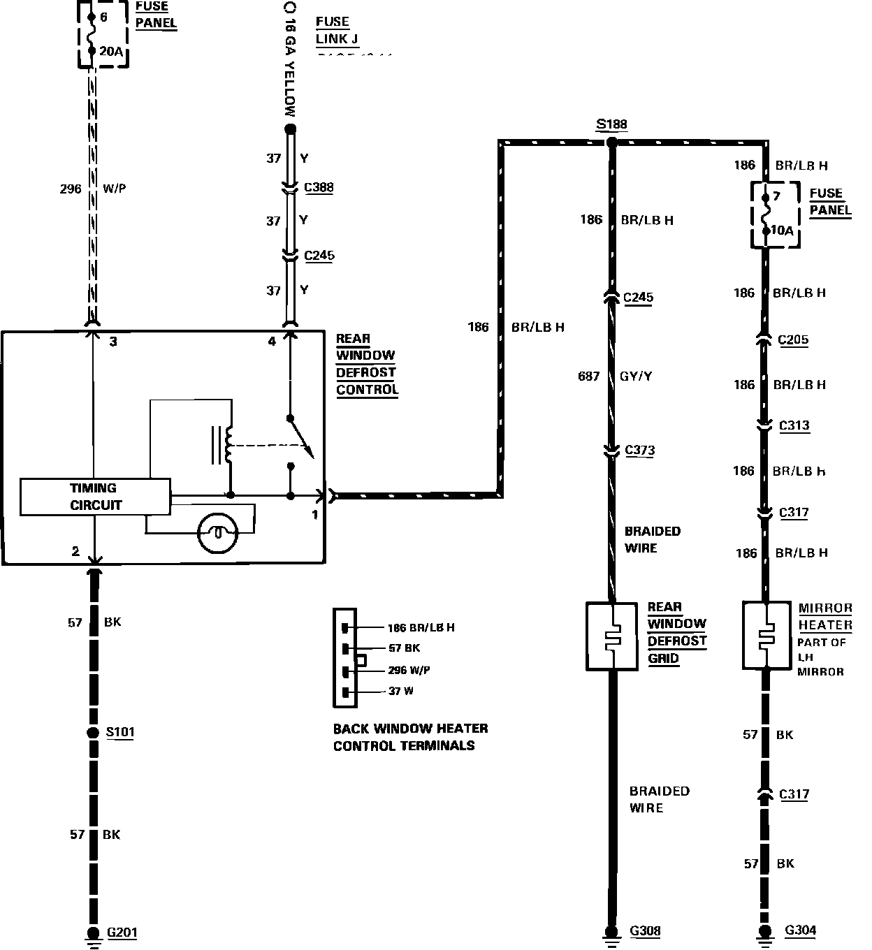 Fig. 166 Rear window defrost wiring circuit. 1983 mark VI & 1983-84 Town Car: