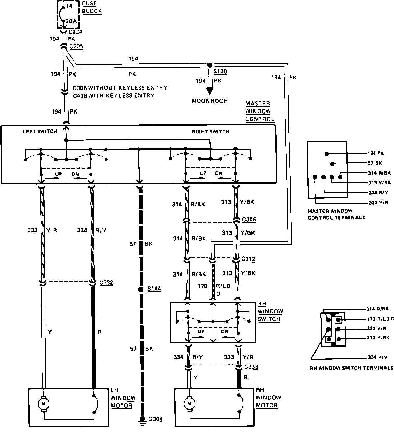 Fig. 156 Power window wiring circuit. 1983 Mark VI 2 door: