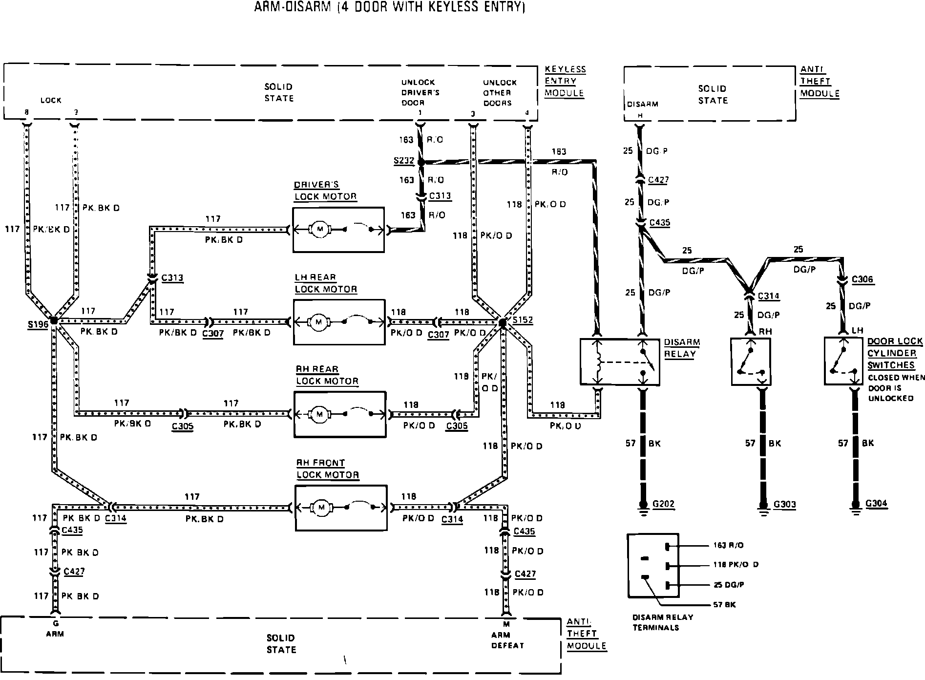 Fig. 19 Anti-Theft system wiring circuit (Arm-Disarm, 4 door with keyless entry). 1983 Mark VI & Town Car: