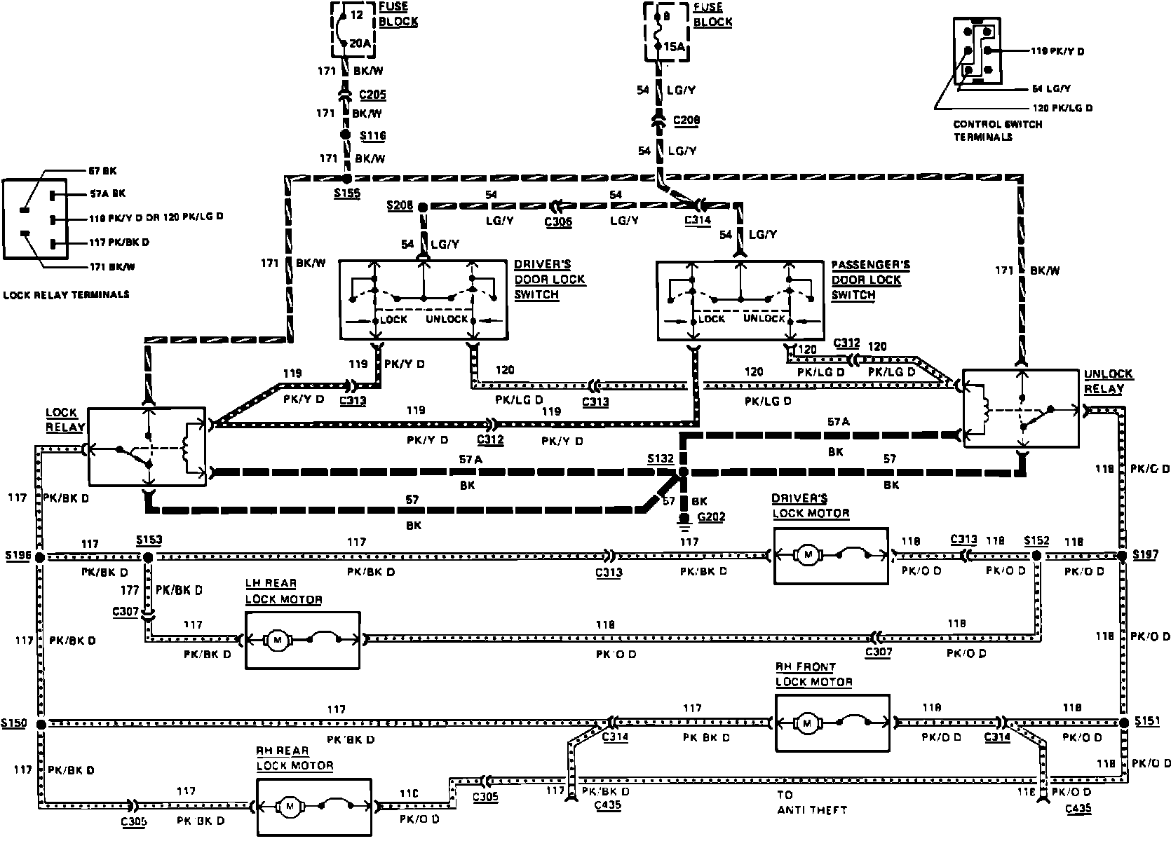 Fig. 139 Power door lock wiring circuit. 1983 Mark VI & 1983-84 Town Car 4 door less keyless entry: