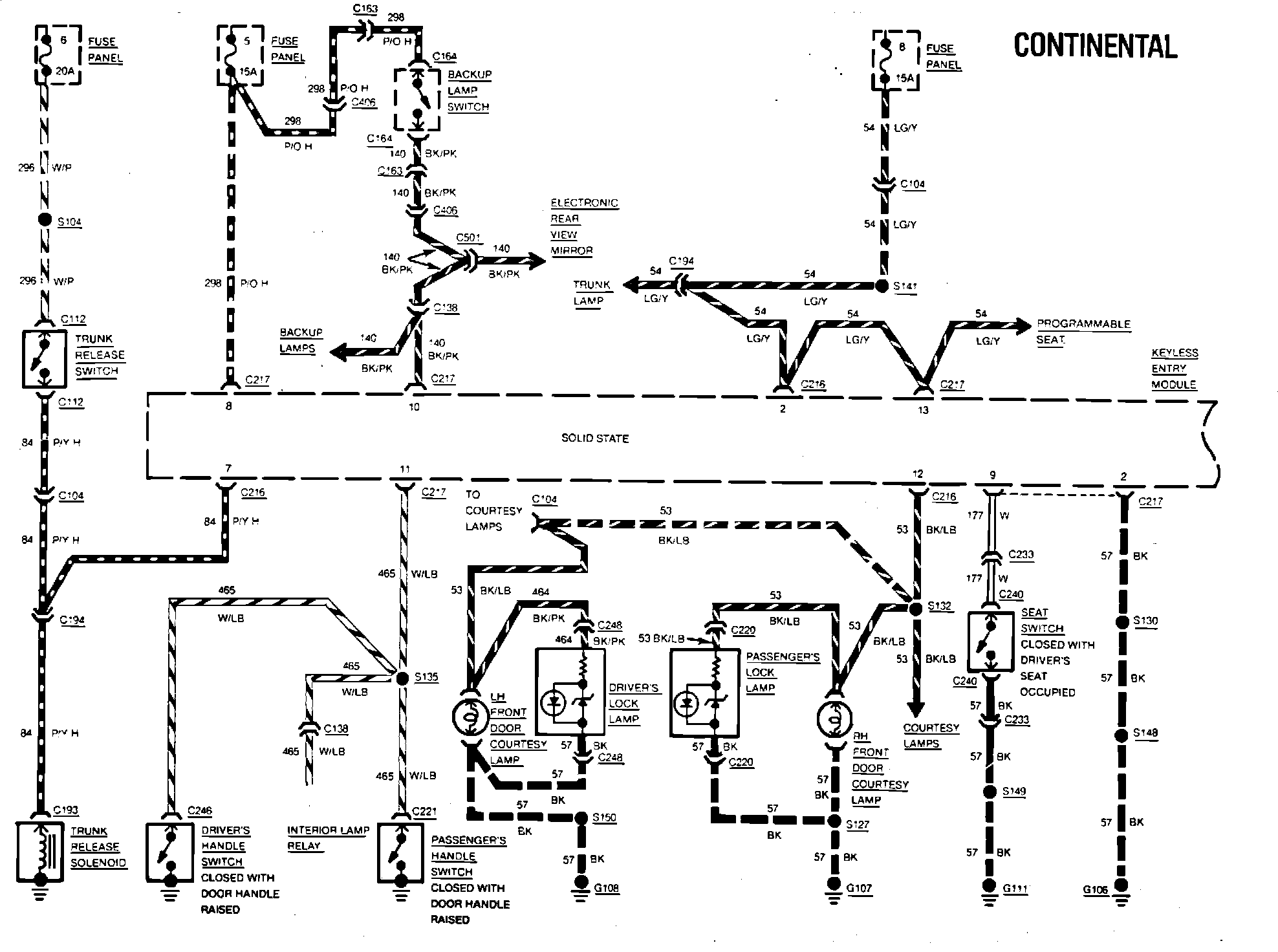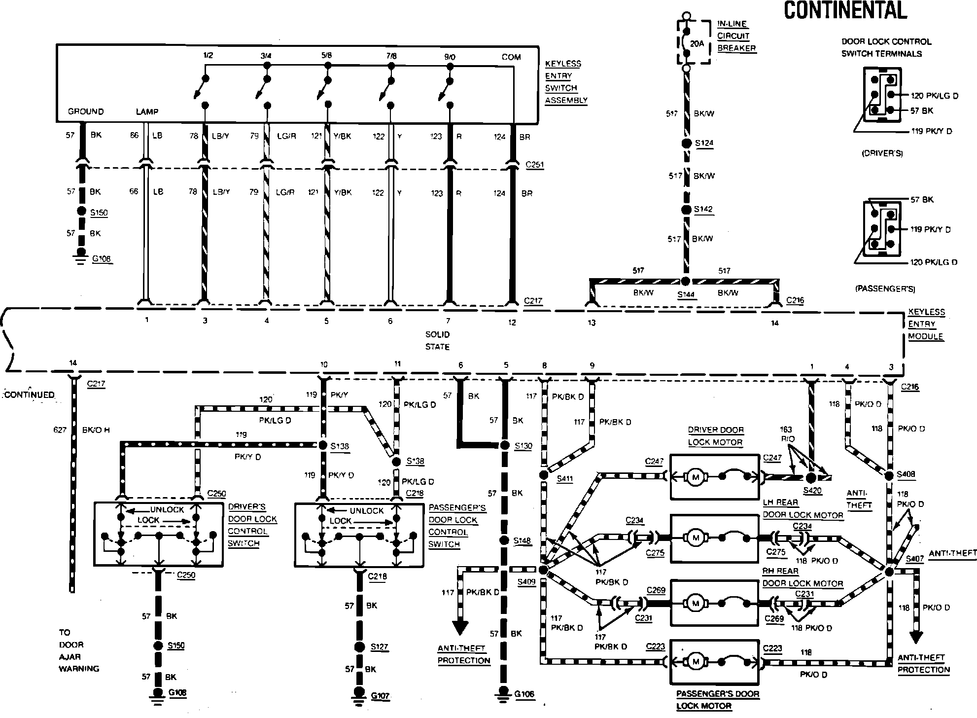 Fig. 142 Power door lock wiring circuit (Part 1 of 2). 1984 Continental with keyless entry: