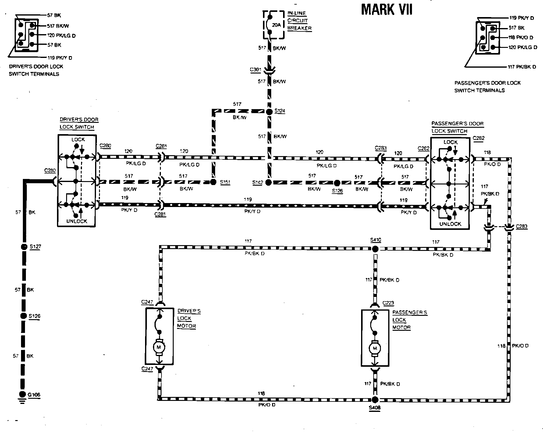 Fig. 143 Power door lock wiring circuit. 1984 Mark VII less keyless entry: