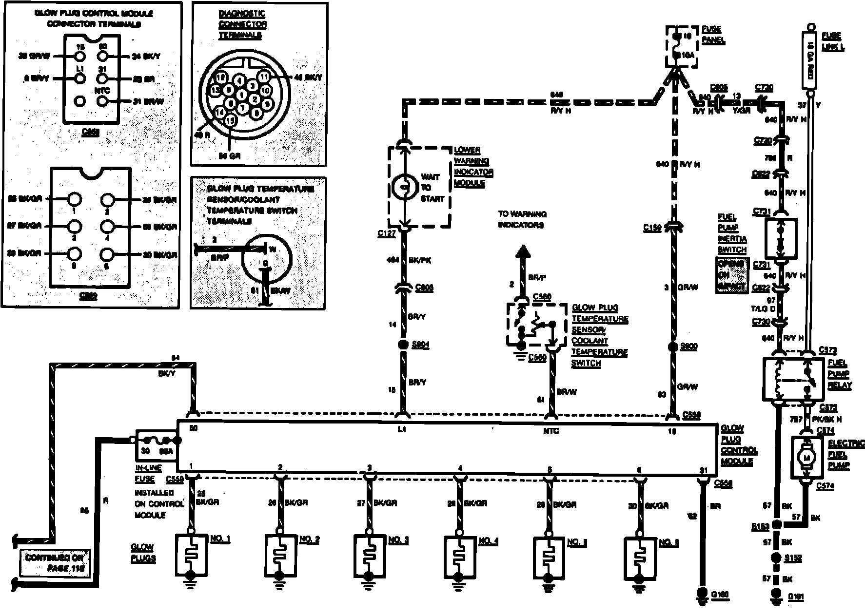 Fig. 47 Fuel Heater Wiring Circuit. 1985 Continental & Mark VII Diesel: