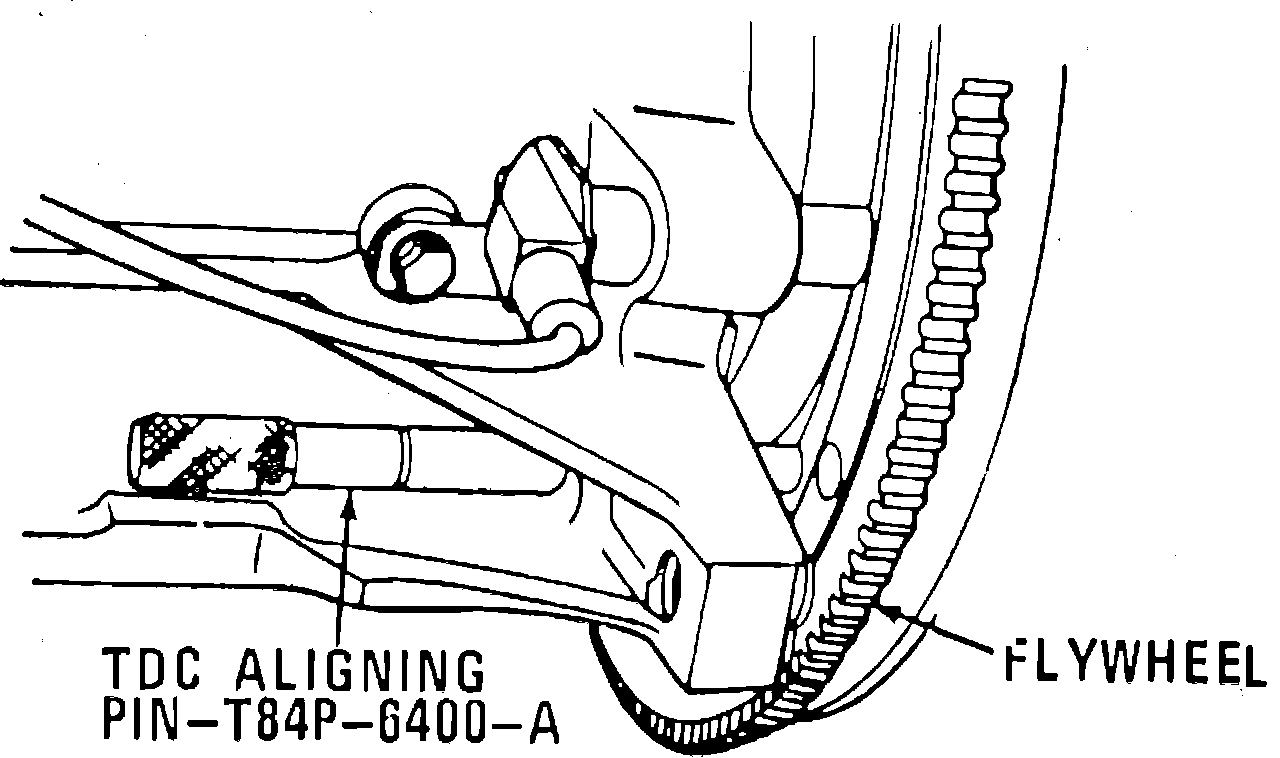 e. Continue to rotate crankshaft until No. 1 cylinder is again at TDC of compression stroke, then install TDC aligning pin, Fig. 3, to secure crankshaft in position.