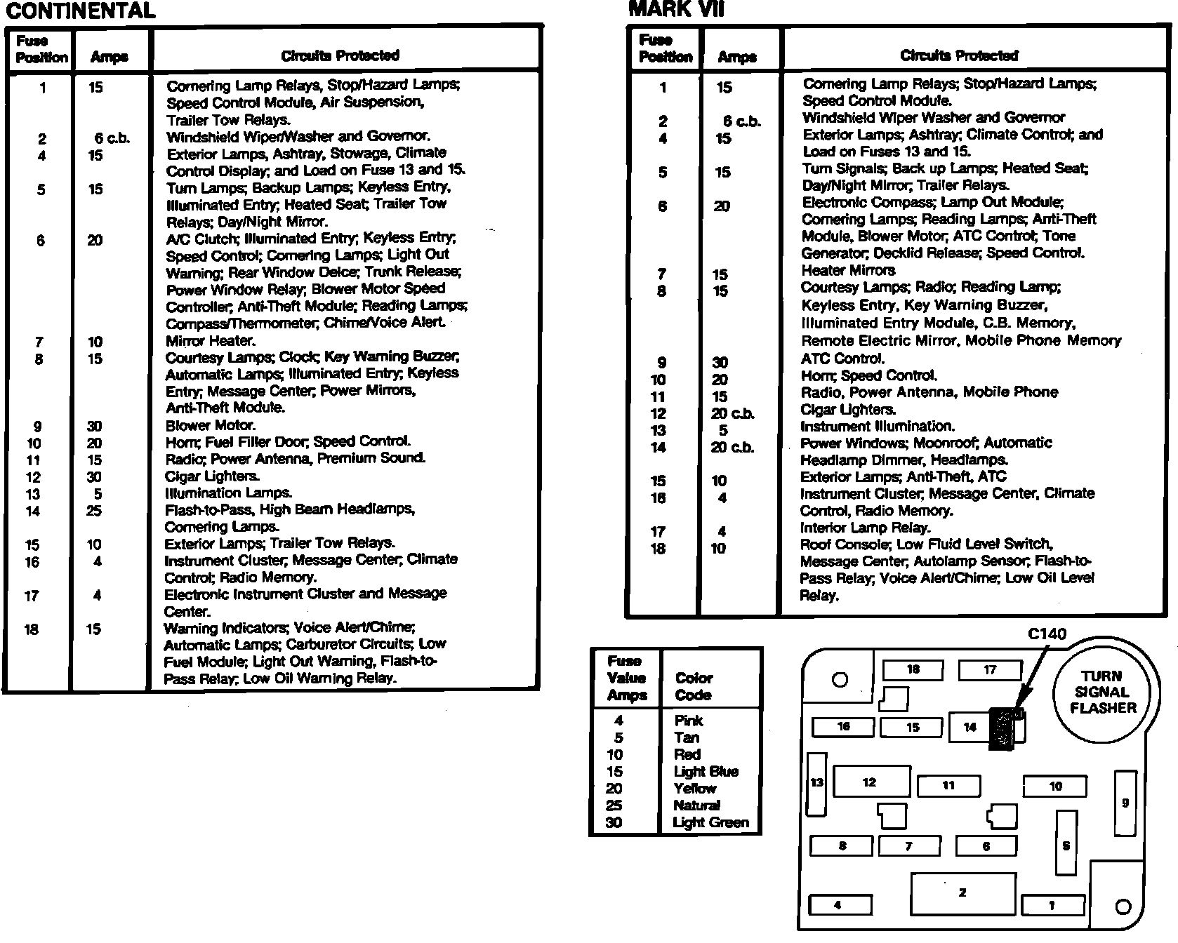 Fig. 1 Fuse Panel. 1985 Continental & Mark VII: