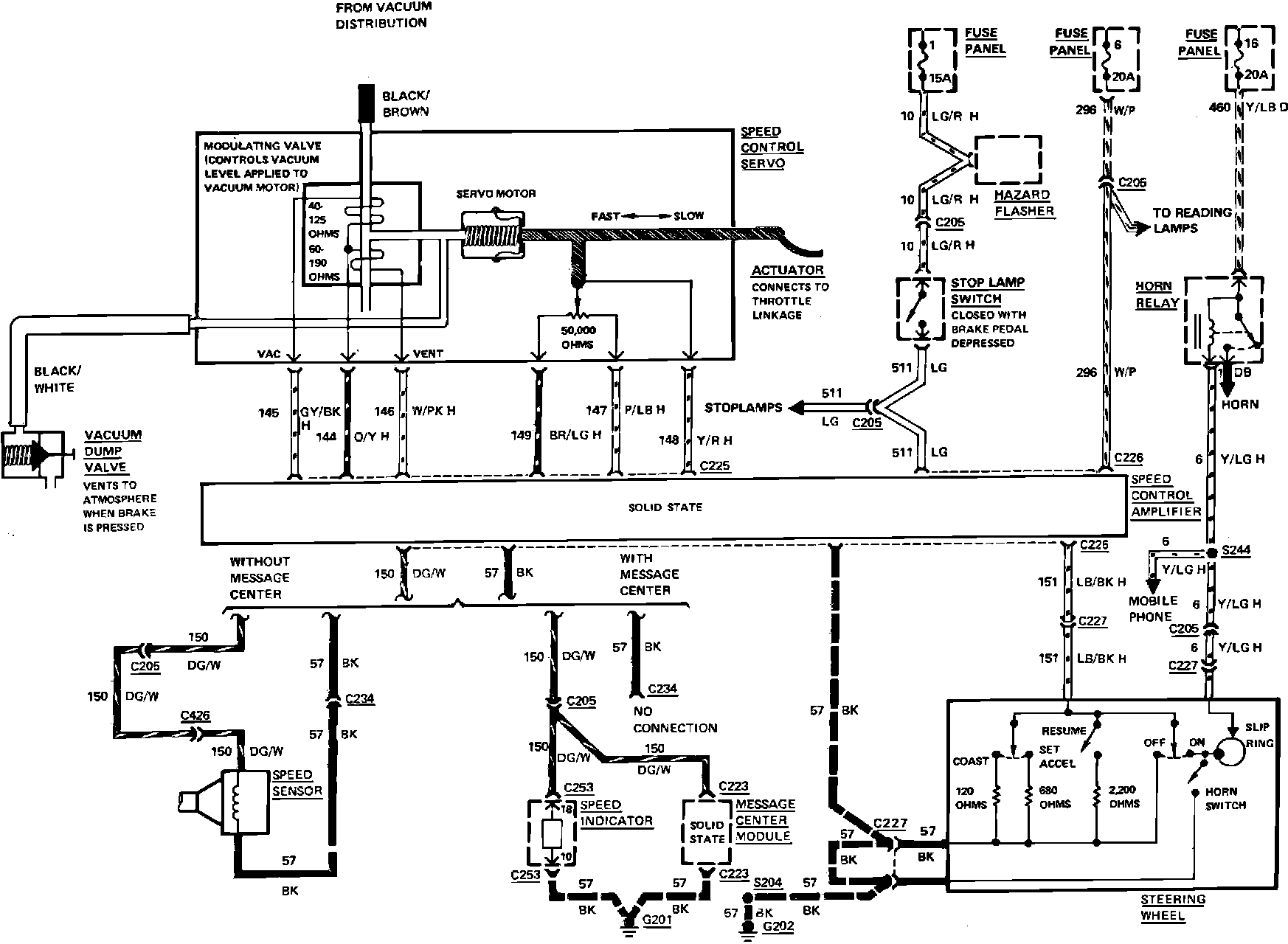 Fig. 122 Speed Control Vacuum & Wiring Circuit. 1985 Town Car: