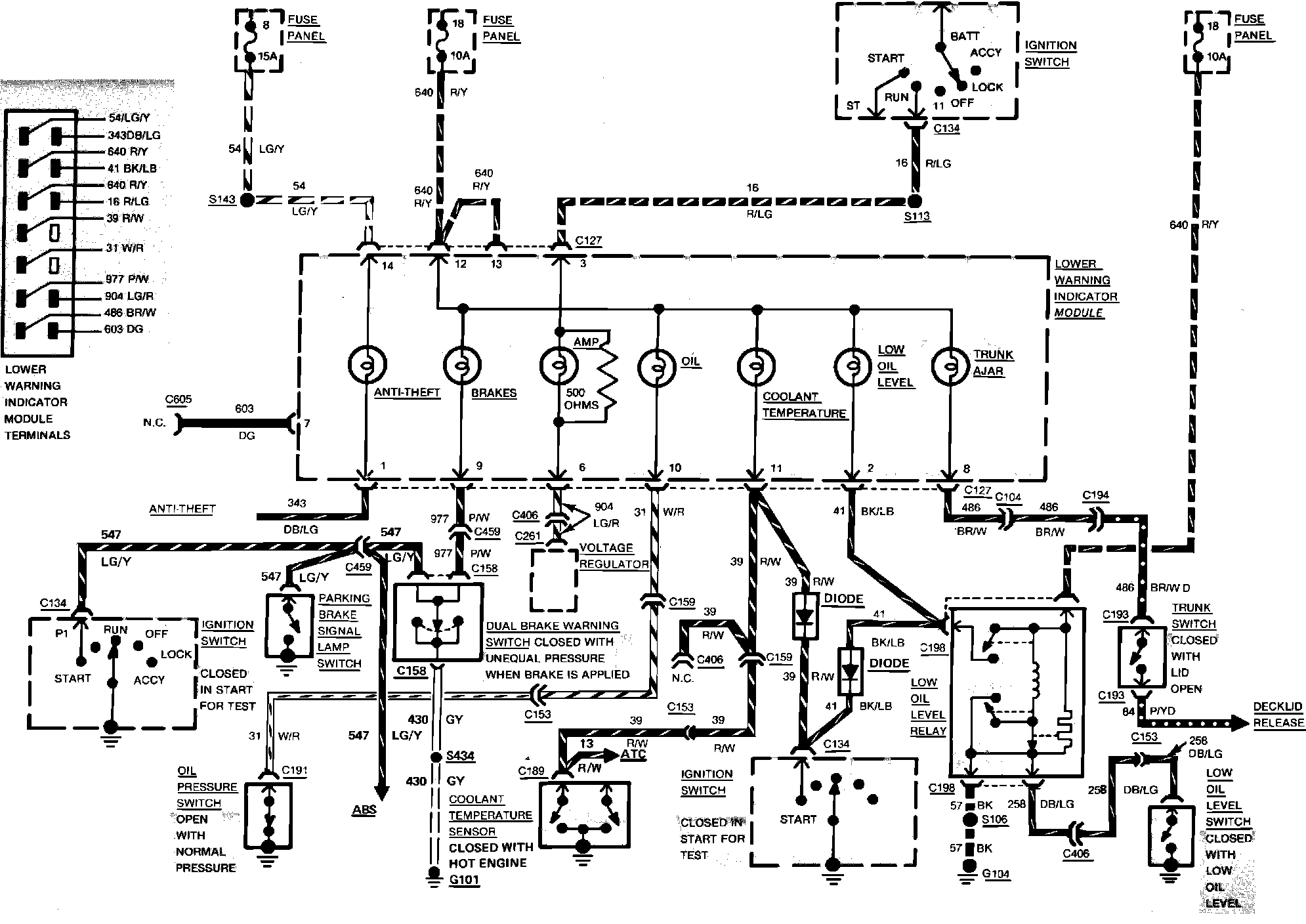 Fig. 81 Warning Indicators Wiring Circuit (Part 1 of 2). Continental: