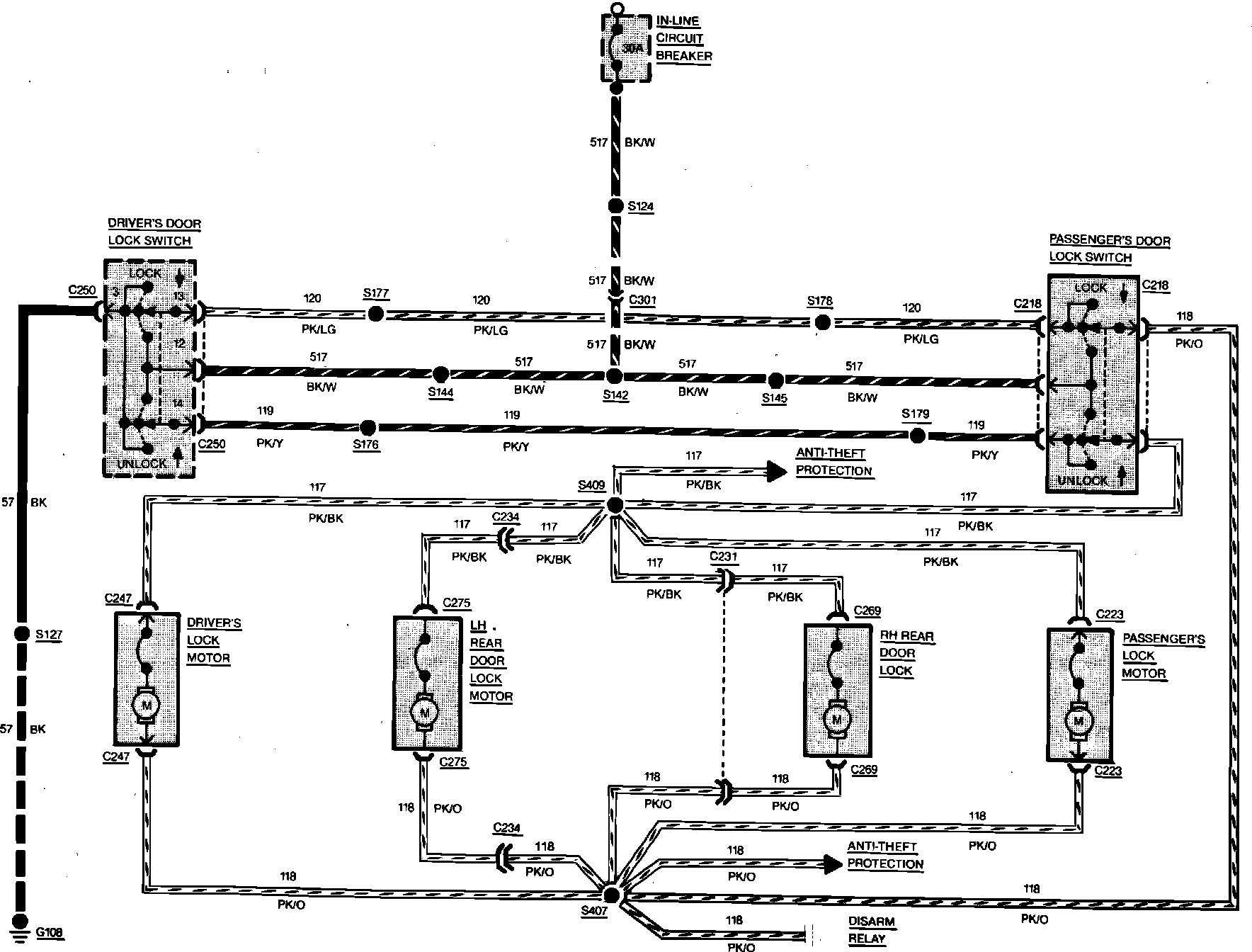 Fig. 69 Power Door Locks Wiring Circuit. Continental Less Keyless Entry System: