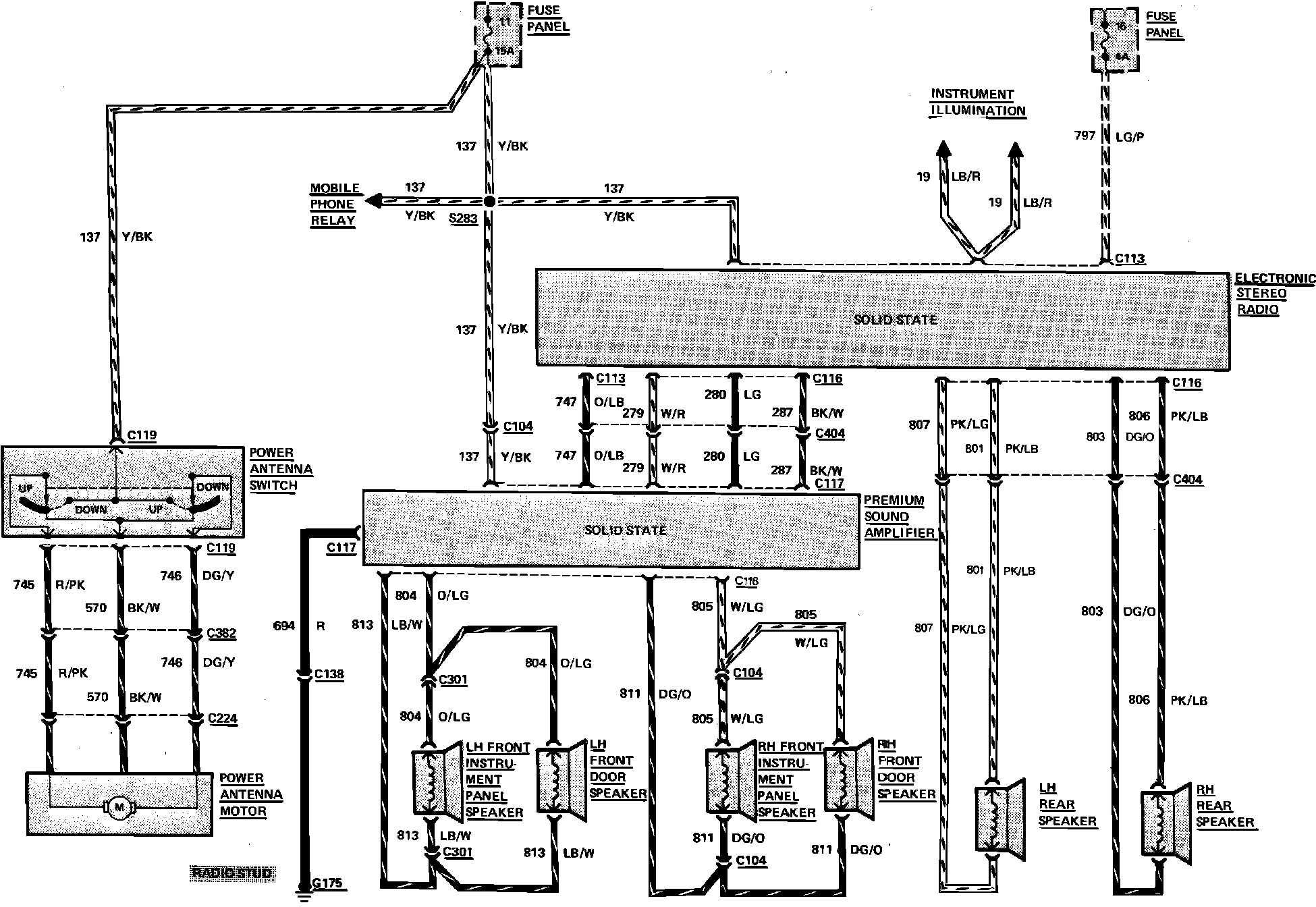 Fig. 78 Radio Wiring Circuit (Less JBL System). Continental: