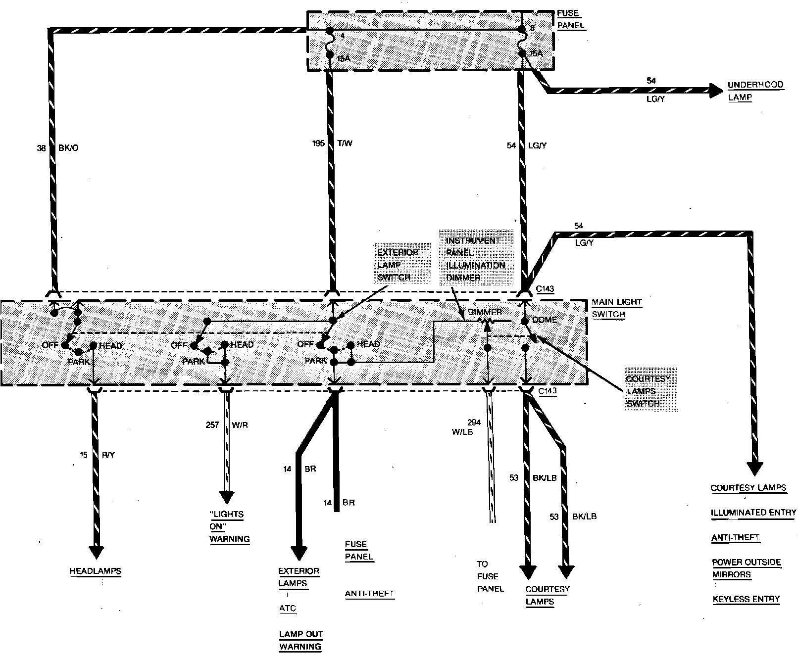 Fig. 67 Power Distribution Wiring Circuit (Main Light Switch Less Automatic Headlamps). Mark VII: