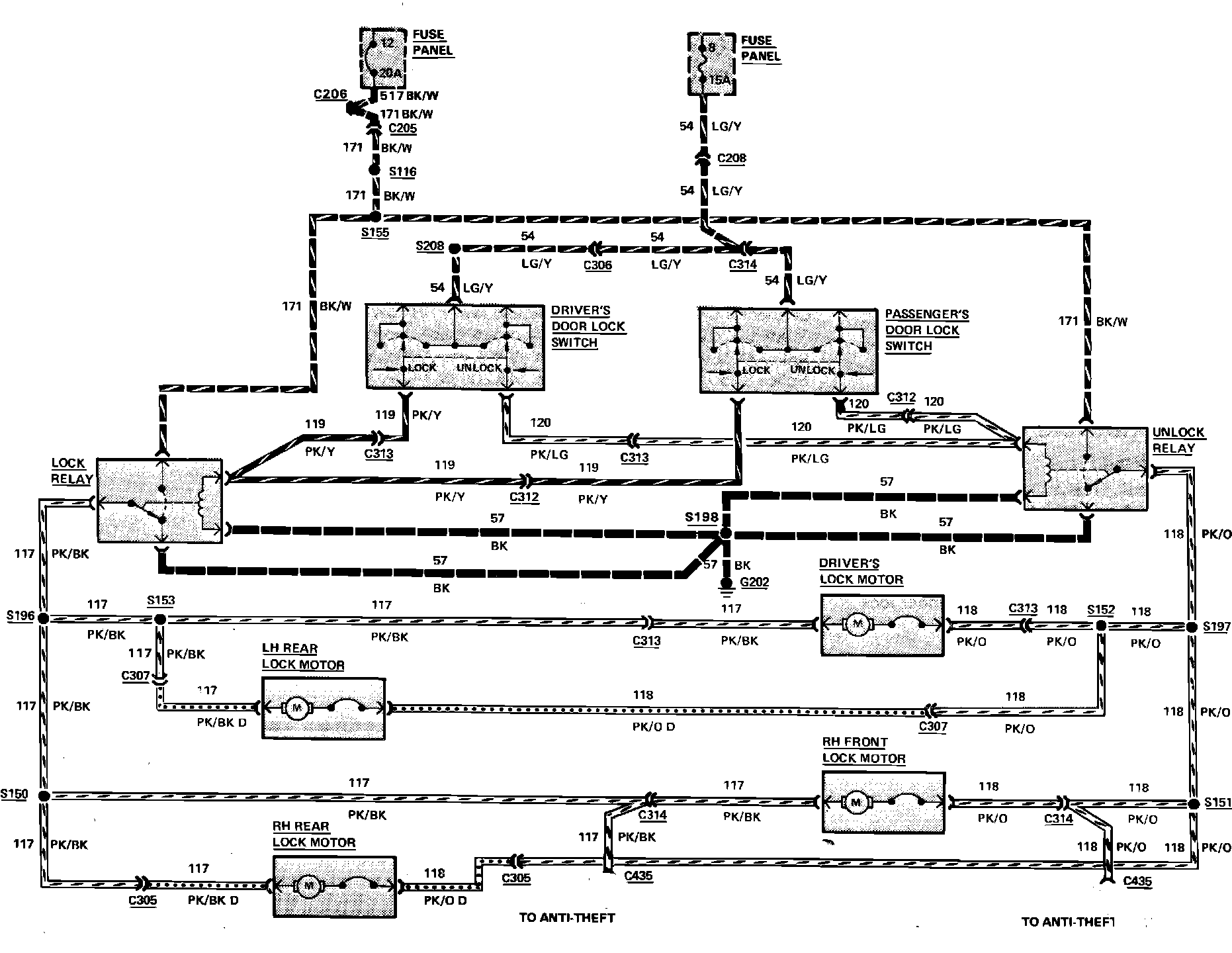 Fig. 144 Power Door Locks Wiring Circuit (Less Keyless Entry System). Town Car: