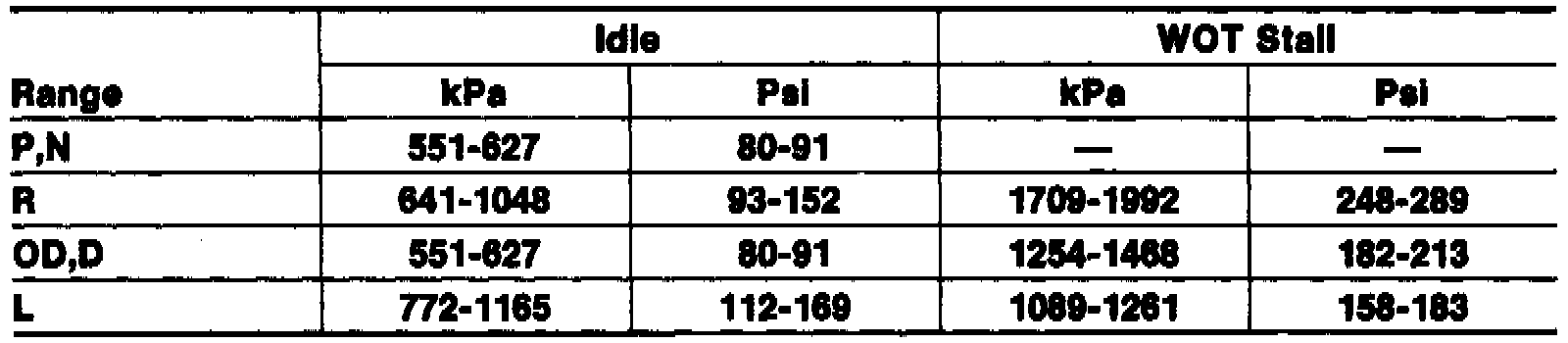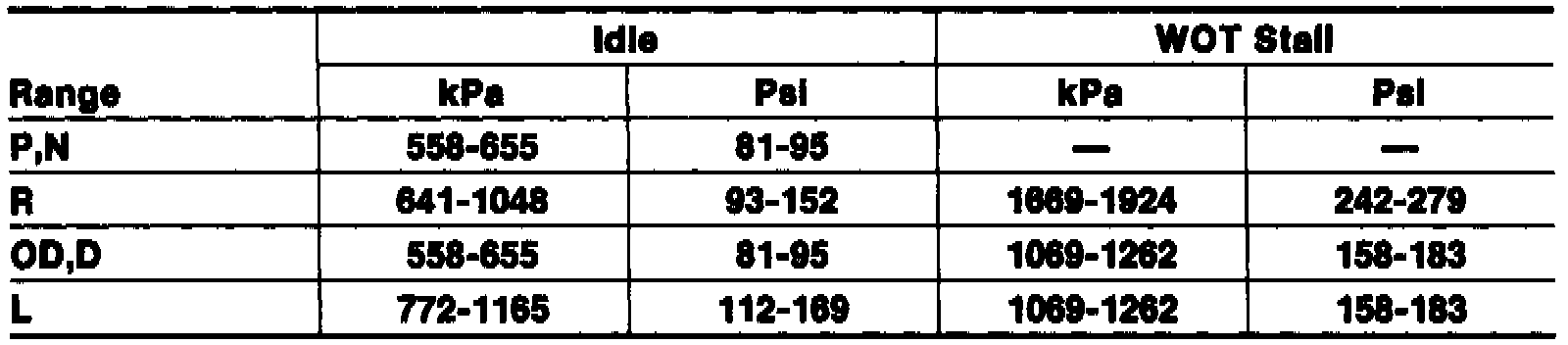 Line Pressure Specification Chart, (W/3.0L Engine):