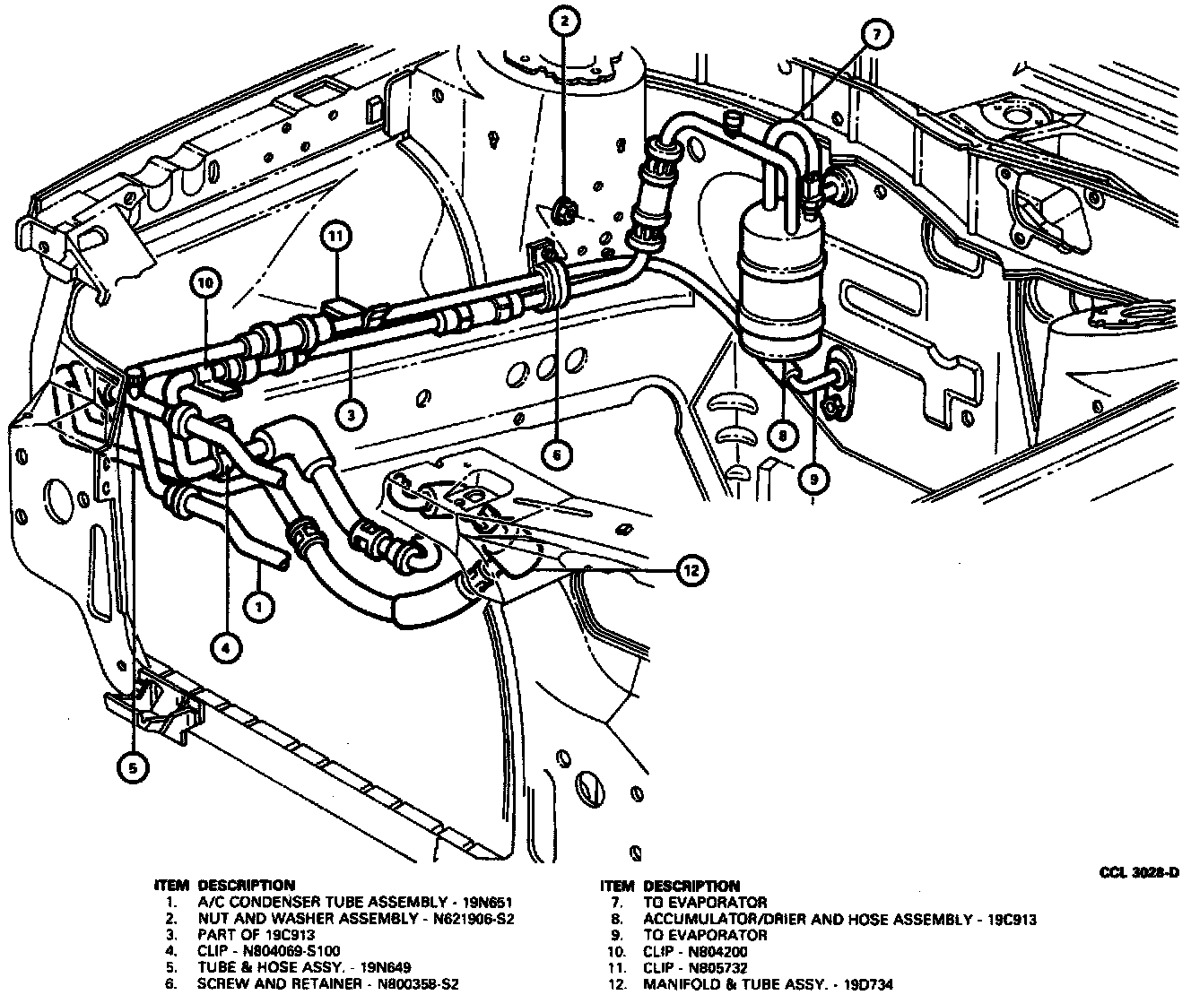 The A/C refrigerant system is a fixed orifice tube-cycling clutch type. The major components are: