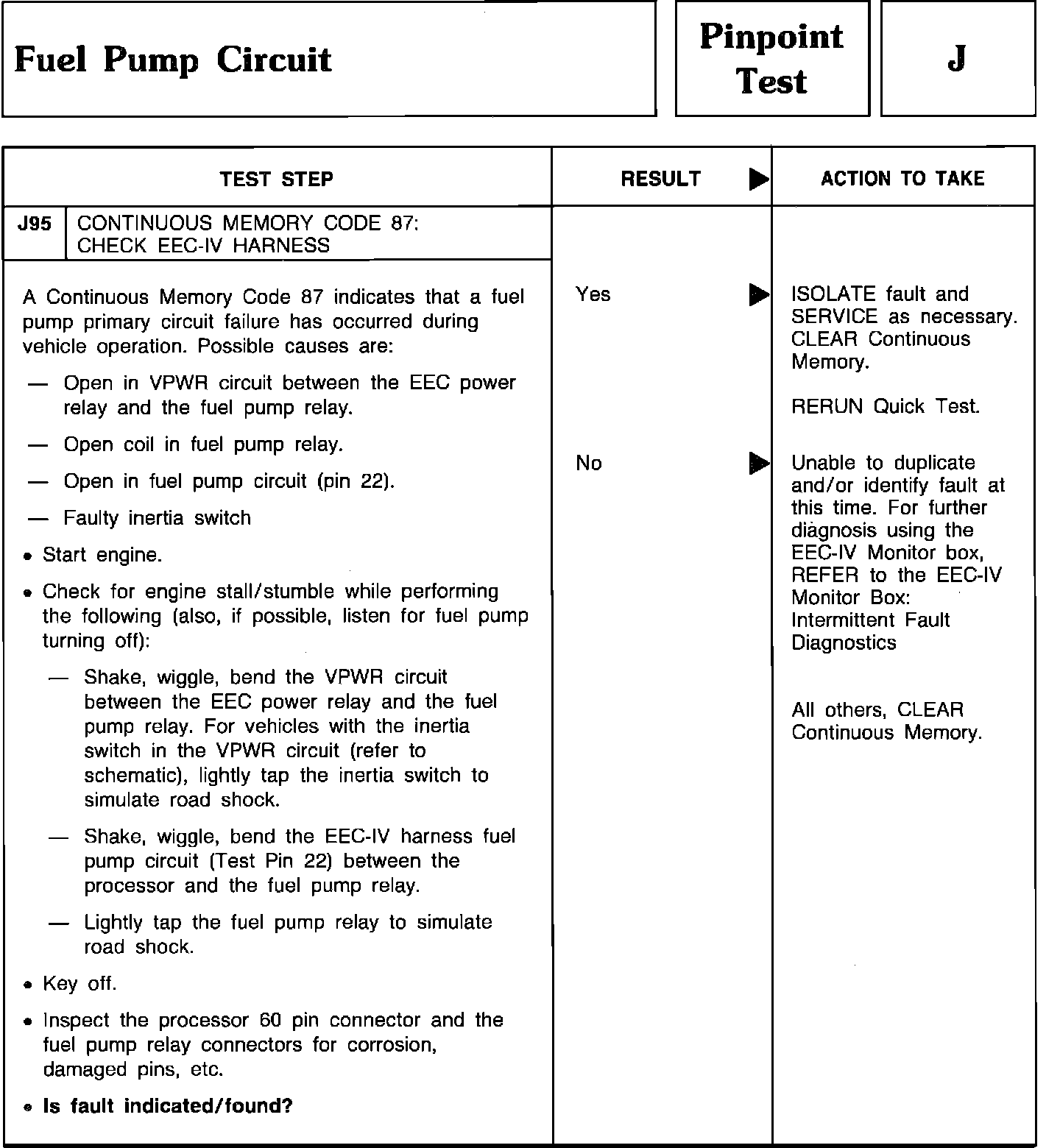 Pinpoint Test J95 - Fuel Pump Circuit: