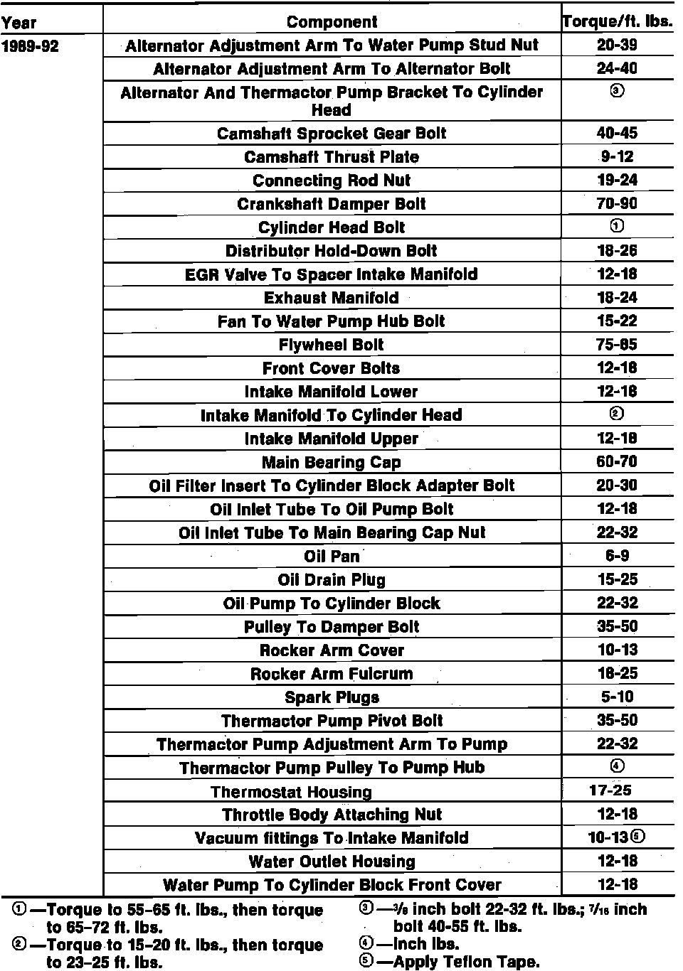 Tightening Specifications: