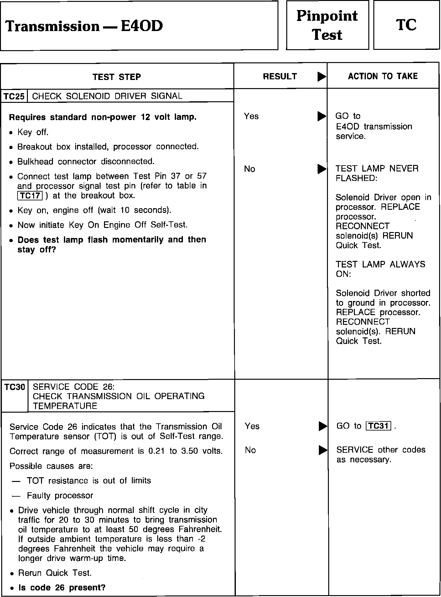 Pinpoint Test TC25 & TC30 - Transmission E4OD: