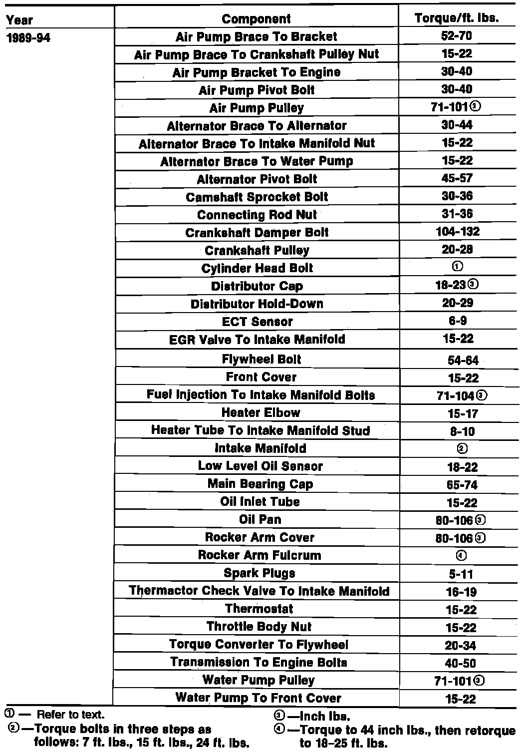 Tightening Specifications: