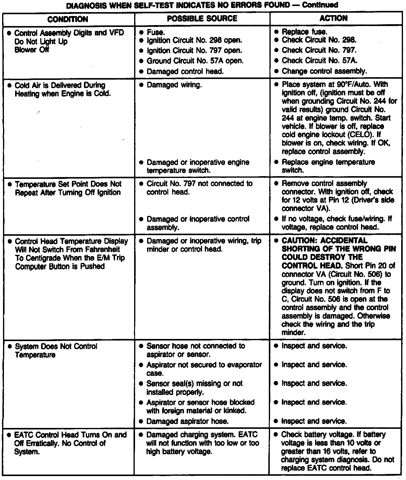 DIAGNOSIS WHEN EATC SELF DIAGNOSTICS TEST AND SYSTEM FUNCTIONAL TEST DO NOT IDENTIFY A PROBLEM AND ITS POSSIBLE SOURCERefer to the illustrations for symptoms, their possible causes, and the test or service procedures required.