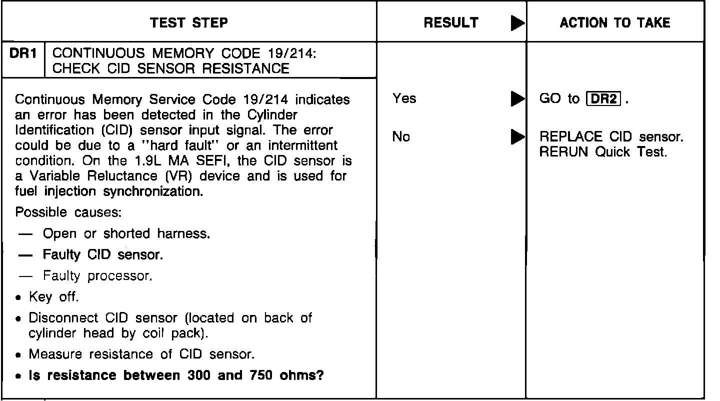 DR1 - Check CID Sensor Resistance