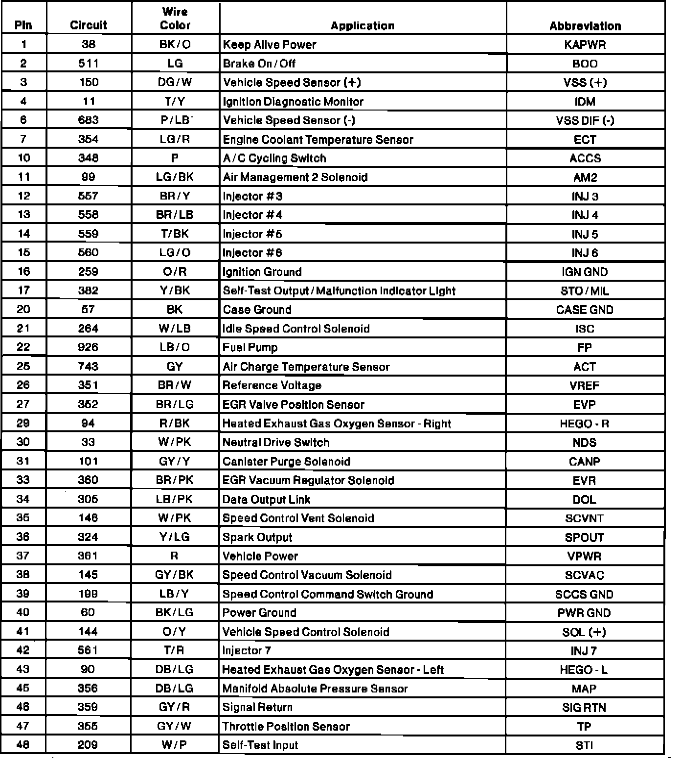 Electronic Engine Controller Connector Pinout: