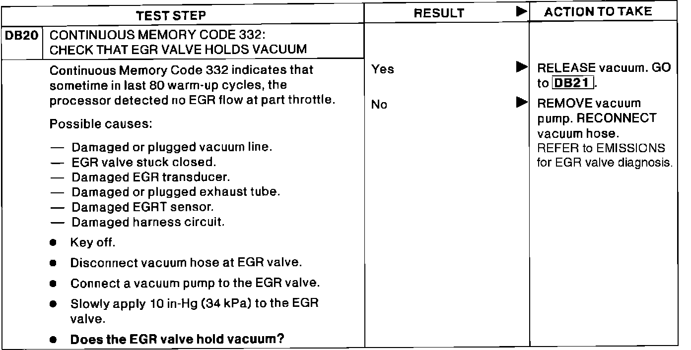 DB20 - Continuous Memory Code 332: Check EGR Valve Holds Vacuum