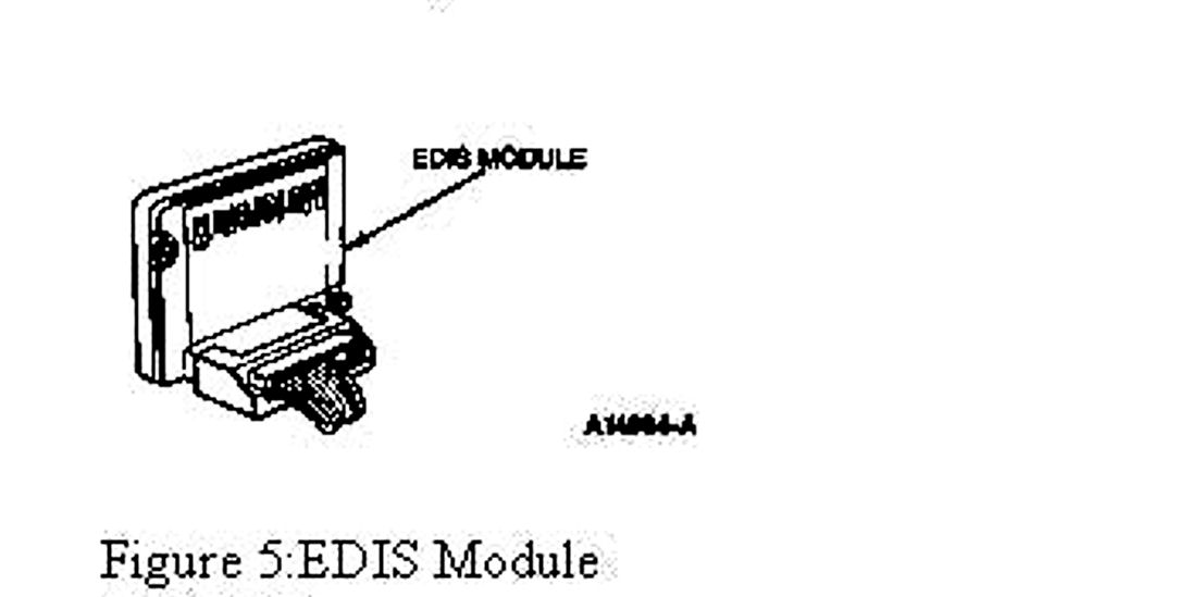 The EDIS module is a microprocessor-based device with coil drivers which make decisions about spark timing and coil firing. The module turns the coils on and off at the correct time and in the proper sequence based on information from the VRS and a pulse-width modulated signal (SAW) generated from the EEC-IV processor. The module receives VRS and SAW signals and produces PIP and IDM output signals which are sent to the EEC-IV processor.