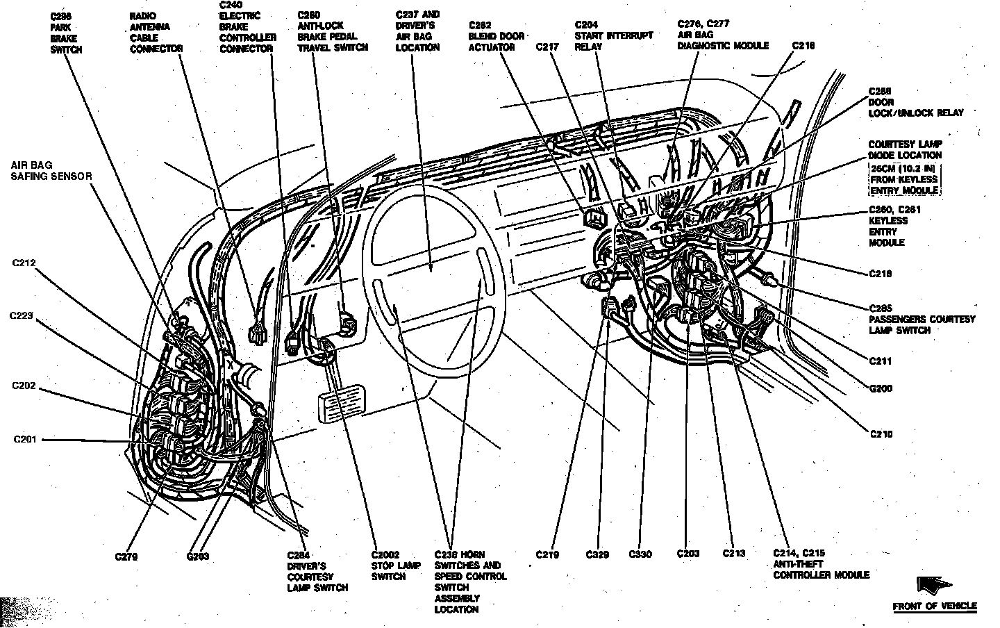 Behind RH Side (Passenger Side) Of Instrument Panel, Front Of Air Recirculation Duct.