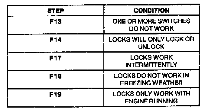 This section contains a number of sub-sections, for handling different types of concerns found with the power locks as reported by the customer.