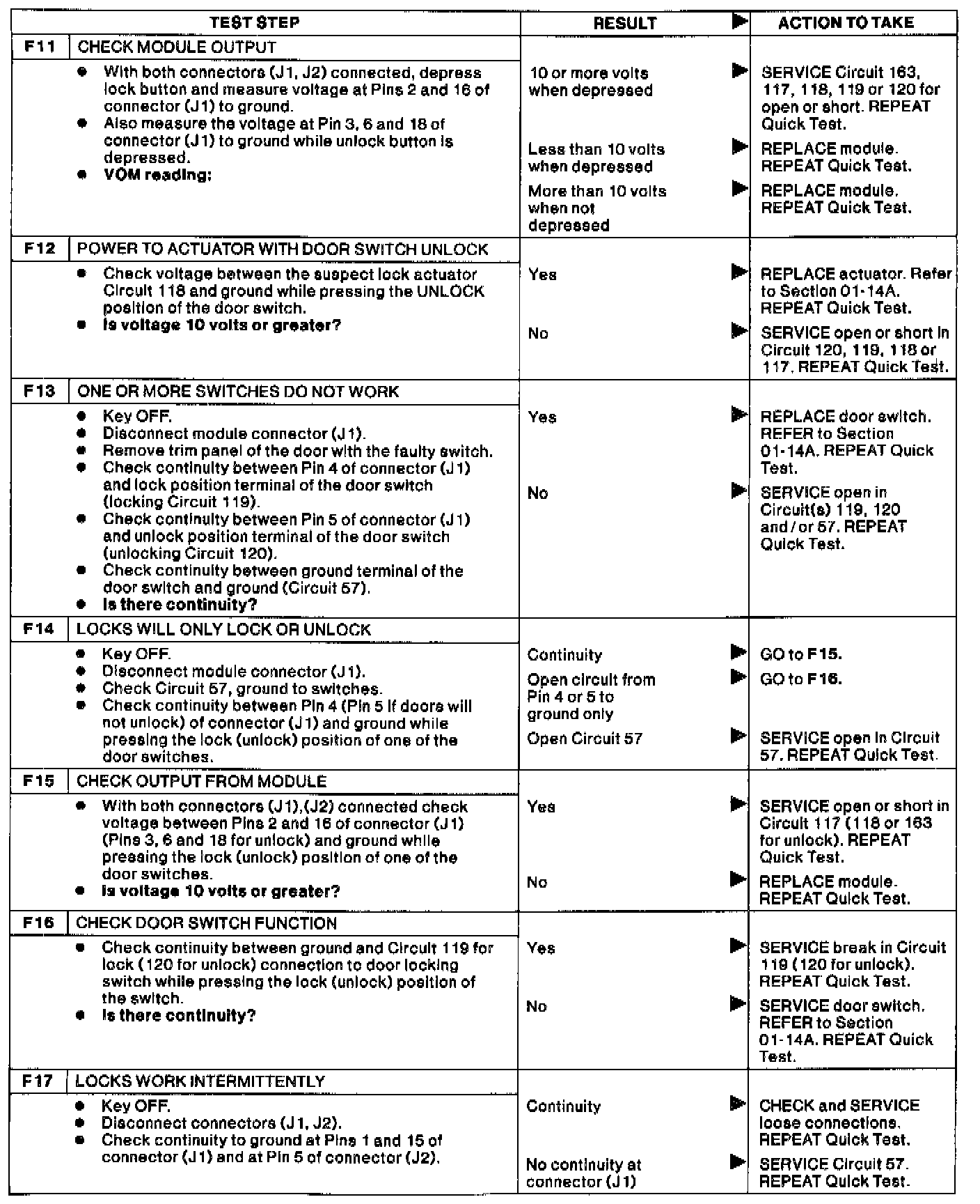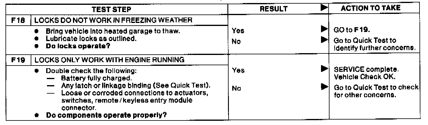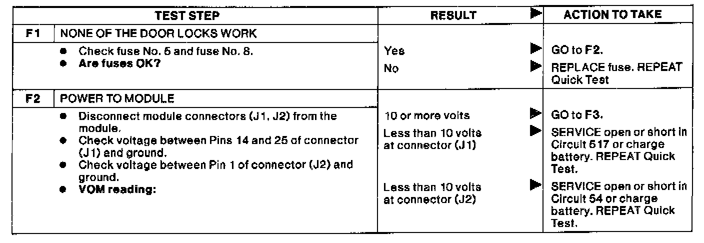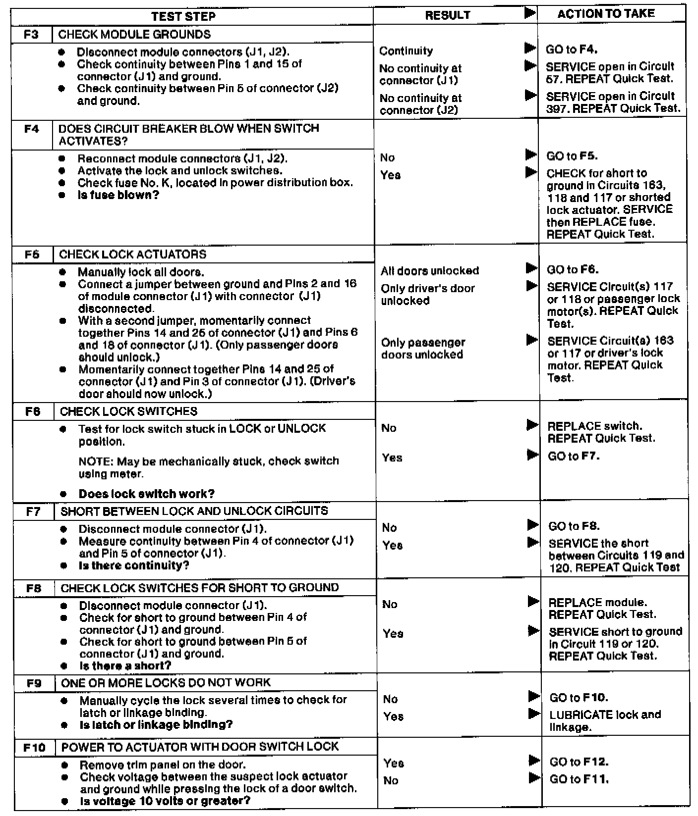 Pinpoint Test F: Power Locks (Symptom Chart):