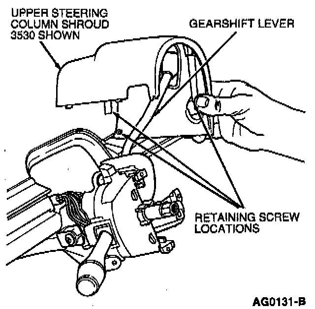 8. Remove four upper and lower steering column shroud retaining screws. Remove upper steering column shroud and lower steering column shrouds.
