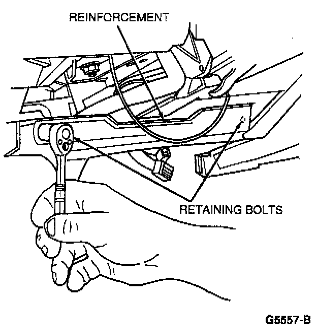 9. Remove two instrument panel reinforcement brace retaining bolts. Remove reinforcement.