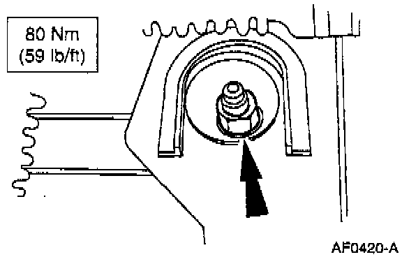 3. Tighten the pivot bolt nut to specification while holding the pivot bolt and the adjuster cam stationary.