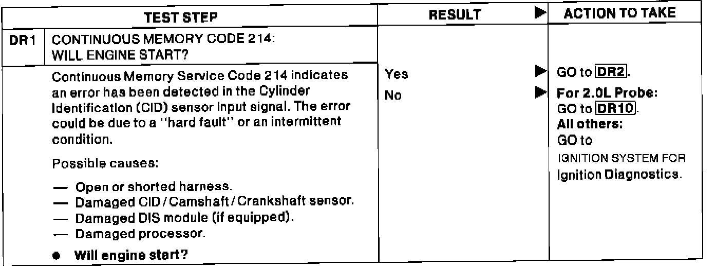 DR1 - Continuous Code 214: Will Engine Start